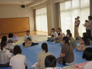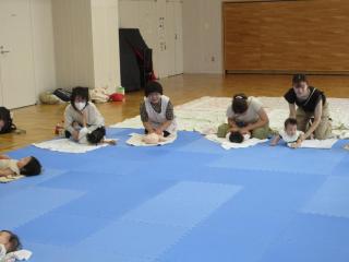 今回の「ベビーマッサージとふれあい遊び」は講師に「すこやかサロン」の中田いつみ先生をお迎えしました。