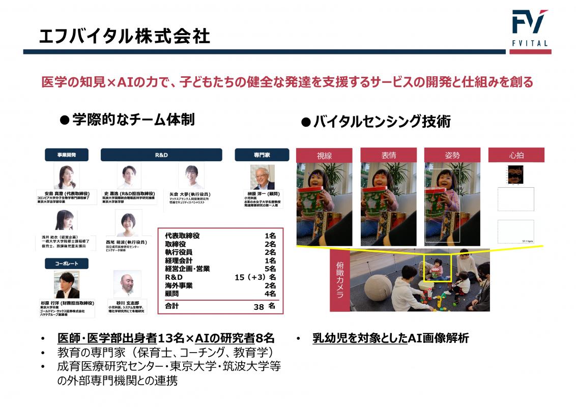 1つ目は、医学や脳科学、AIなど、学術専門家によるメンバー構成であること。2つ目は、撮影した動画から子どもたちの発達を自動評価する独自技術を持っていることです。