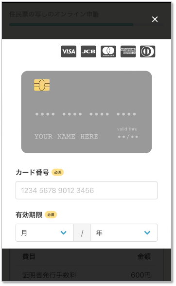 Graffer アカウントにログインして申請した場合、以前に支払いの際に用いたクレジットカード情報が引き継がれています。